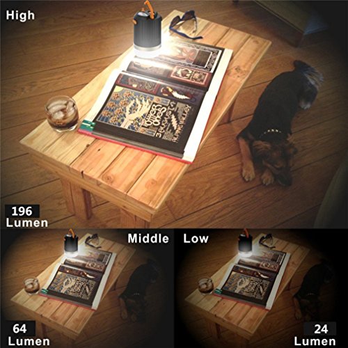 DIMMABLE : Comes with 4 modes of lighting -3 dimmable modes for brightness (low 24lumen /middle 64lumen /high 196 lumen) ,with the other being flashing mode for emergency.