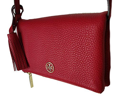 -. Brand : Tory Burch -. Color : Kir Royale -. Department : womens -. EAN : 0888736773173 -. Feature : Leather / Zipper closure, It can be worn over the shoulder or crossbody bag / Approximate 4.78" (H) x 8.09" (L) / Removable tassel / Tory burch gift packaging included in shipping. -. ProductGroup : Shoes -. ProductTypeName : HANDBAG -. Size : Small -. Title : Tory Burch Robinson Pebbled Leather Mini Fold-over Cross-body Bag -. UPC : 888736773173 Robinson Pebbled Mini Fold-Over Cross-Body is made of super-soft, richly textured leather. Detailed with a secure zip closure, an adjustable strap and a removable tassel.