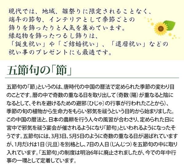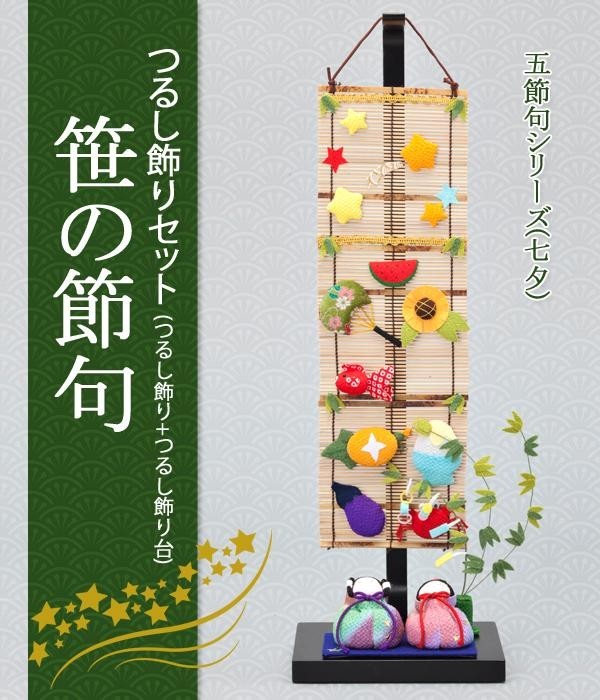 | サイズ | つるし飾り台:465×125×150mm、つるし飾り部分110mm×335mm、人形1個:高さ60mm×幅50mm 個装サイズ:52×19×13cm |