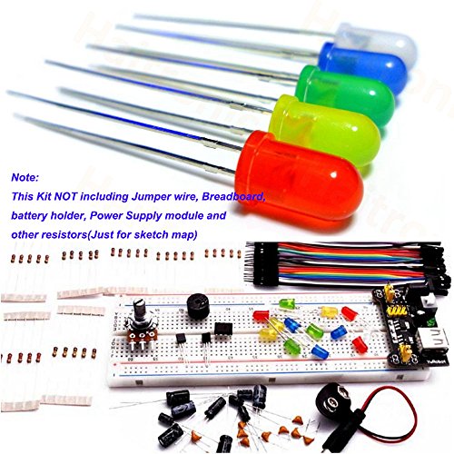 Haitronic 254 in 1 basic Arduino component starter kit with resistors(10 kinds: 10R-1M), LEDs(5 color), Switch, B50K Potentiometer, pin header for Arduino UNO R3 Leonardo, MEGA2560, Nano, Raspberry Pi