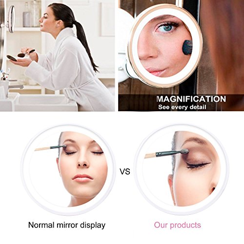 5X Magnification- Ideal magnification for your daily makeup and grooming routine. View your entire face or focus in on a specific section without distortions. ABS high quality plastic to prevent it from moisture and rust. Sleek design to match any indoor decoration.