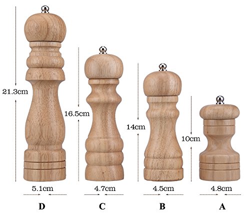 This Wood Pepper Mill features a Precision Mechanism designed for professional seasoning and creating the ultimate flavor. With a machine cut, hardened carbon steel grinder this mill features the best quality mechanism available. The spring loaded mechanism allows easy adjustment between fine and coarse grinds. The superior output of pepper provides more grinds with each turn. High-quality wooden material brings you a more natural experience, free you from the cold metal feeling in winter. Conveniently select between fine or coarse granules by adjusting the knob on top-turn the top knob tighter for finer grinds; looser for coarser grinds. The stainless steel core is wear-resistant and suitable for soft and hard food grinding. Freshly ground food is fragrant enough. Product Materials: Wooden ; Size(Height x Width ): 4 inches: 10 x 4.5cm/3.94" x 1.77"; Volume: 30ml; 5 inches: 14 x 4.5cm/5.51" x 1.77"; Volume: 40ml; 6 inches: 16.5 x 4.7cm/6.50" x 1.85";Volume: 48ml; 8 inches: 21.3 x 5.1cm/8.38" x 2.01"; Volume: 60ml; Usage: Manual Control Function: Grind pepper, salt, sesame and so on. Other: Suitable for home, hotel, restaurant and other occasions, can be used as a gift; Applicable: solid spices Sensory Description: unique appearance, feel comfortable to hold. Unscrew the stainless steel nut; Open the round wooden lid, put pepper in it; The cover screwed on, Push turn right and turn round wooden cover; More spin several times, the crushed pepper. Package Included: 1 x Wooden Grinding Ceramic Core Salt and Pepper Grinder Note: *All products by SHZONS(TM) are exclusively sold and distributed by SHZONS** 0 |