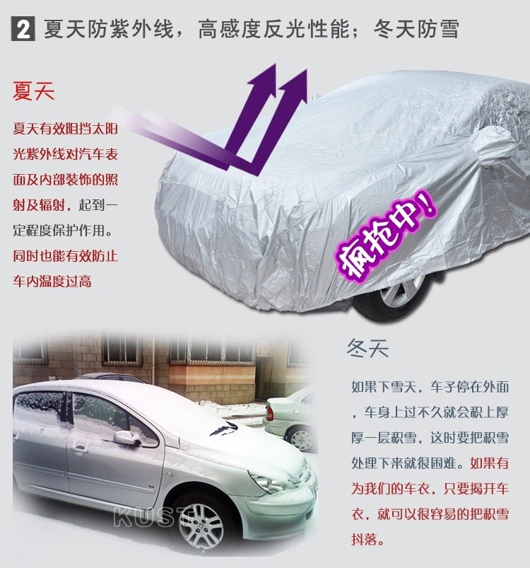 One is the summer clothing cars can effectively prevent the interior temperature is too high, to prevent the interior temperature in aging, nor the sauna.