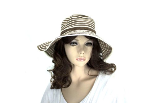 -. Title : Noonies Boutique Poprocks Brown/Cream Striper Hat 15'' w/ 4'' Brim