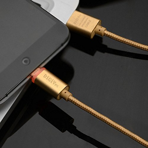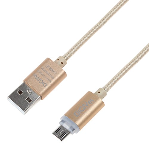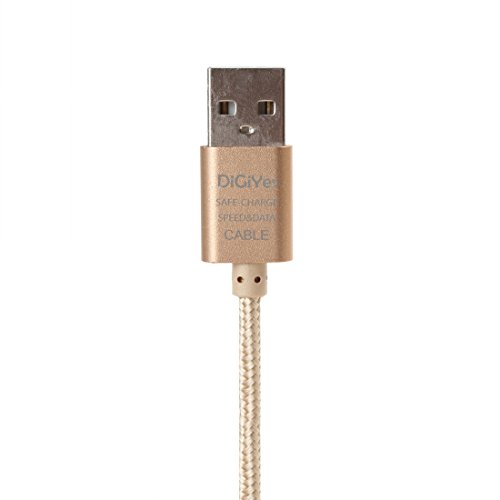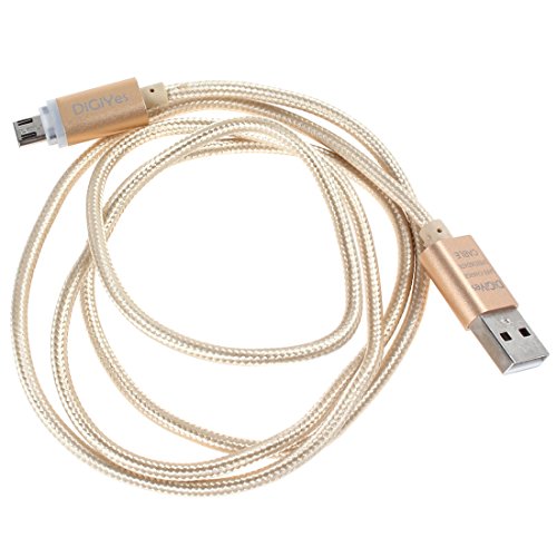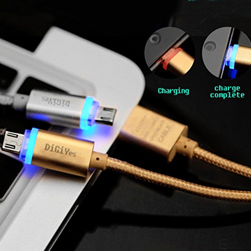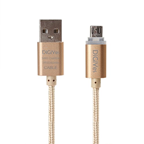 DiGiYes LED Light Up Micro USB Cable 1M/3Ft Nylon Braided Tangle-Free Sync Charging & Transmit Data Cord for Android, Samsung, HTC, Nokia, Sony and More Devices with Micro Interface (Gold)