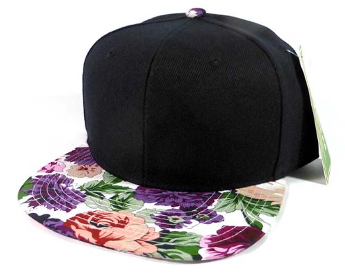 -. Title : Fashion Blank Floral Snapback Hats Caps - Black | Purple Flower Brim