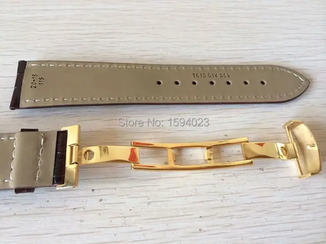 | [해외] 20 미리메터 (Buckle18mm) T019430 고품질 골드 도금 핀 버클 + 브라운 정품 가죽 시계 밴드 스트랩 |