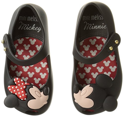 Precious mary jane toddler shoes. Minnie and mickey mouse kissing detail. Made in brazil, 100 percent recyclable plastic.Feature
