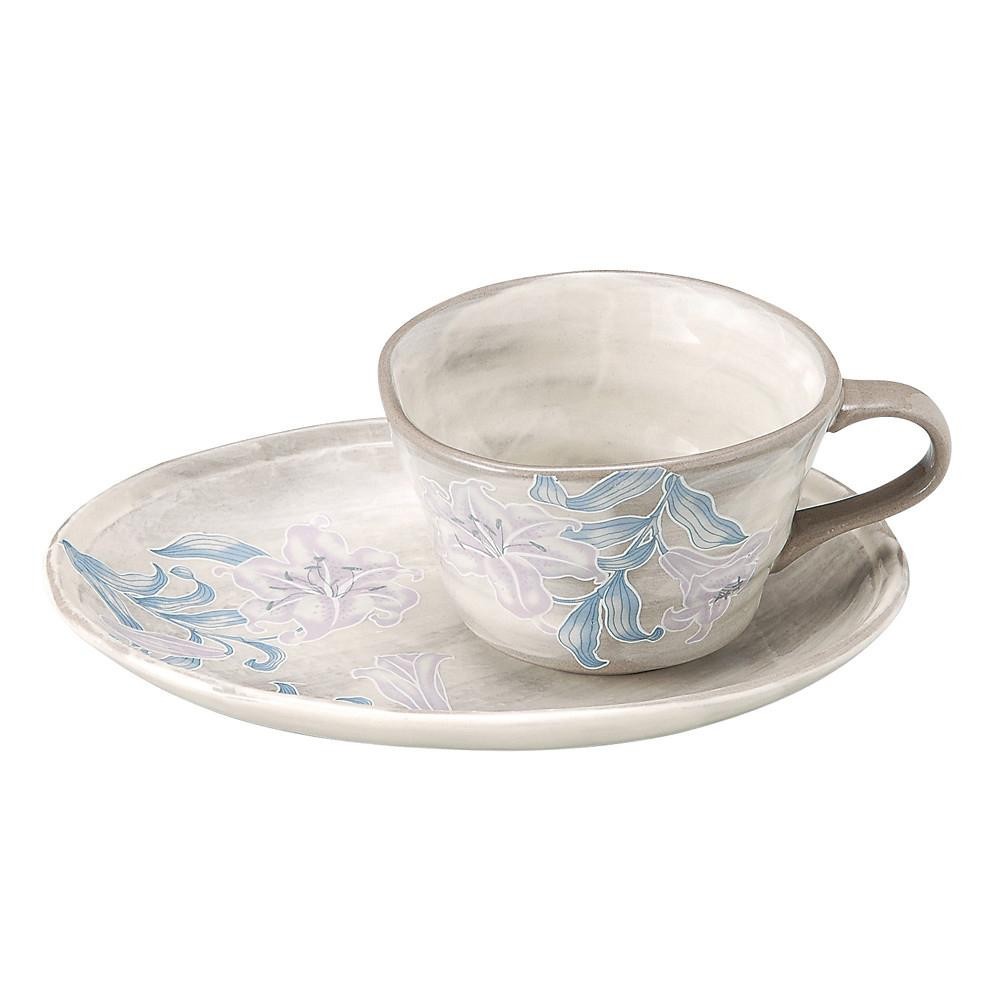 着物のブランド「撫松庵」とのコラボにより生まれた和陶器です。 製造国:日本 素材・材質:陶器(瀬戸焼) 商品サイズ:碗:約9.8×9.5×H6.2cm、皿:約18.5×13.9×H2.4cm 仕様:食器洗浄機の使用:不可電子レンジの使用:可容量:250ml セット内容:碗×1、皿×1 ※サプライヤー直送品 ご注文後2~3営業日後の出荷となります【商品名】撫松庵 リリー 碗皿 503425