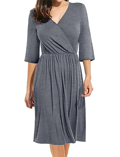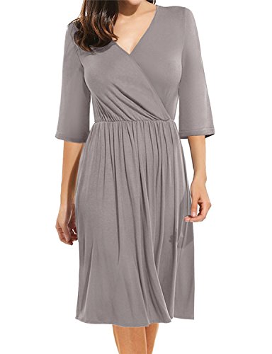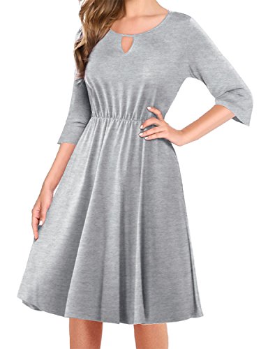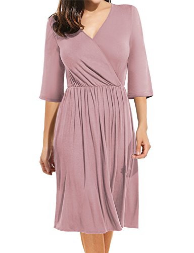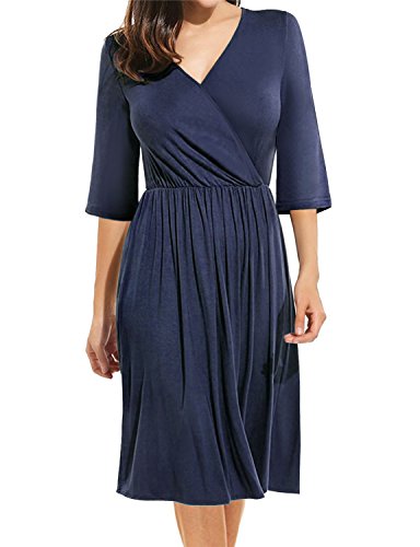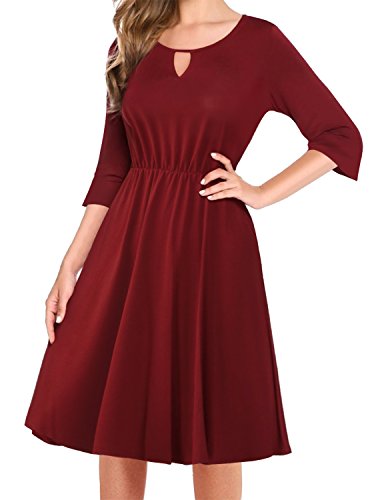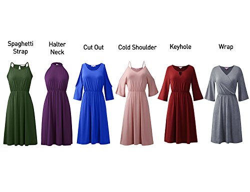 ## (5) Wrap ##: Wraped style dress. Jersey fabrci, soft and stretch. Very comfortble fit. Wear it for work or casual look. ## (6) Keyhole ##: Round neckline with keyhole detail. Bell and 3/4 sleeves. Flattering fit.