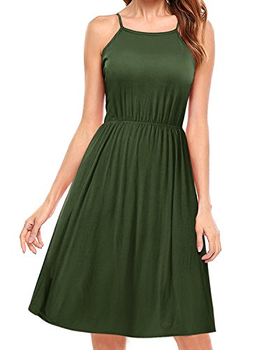 ## (1) Spaghetti Strap : ## Cami Strap Halter Neck Midi Dress. Solid color and basic style. Easy to styling. Flattering and loose fit