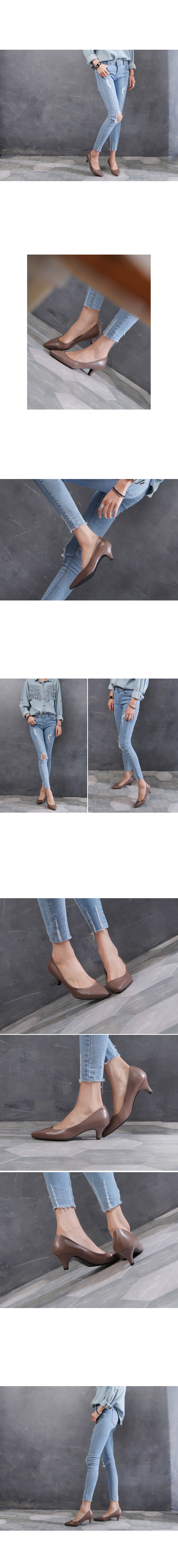 뾰족한 토우라인으로 발끝까지 가지런히 모아주어 착화했을대의 라인이 깔끔하게 보여집니다 국내 수제공장에서 꼼꼼히 제작되어 마감처리및 완성도가 매우 훌륭한 슈즈입니다 미들굽 5cm 굽높이로 착화감이 안정적이며 다리라인을 슬림하고 길어보이게 해주며 폭신폭신한 쿠션패드가 인솔에 내장되어 발의무리를 덜어주어 편하게 착화하실수 있습니다 베이직한 디자인으로 유행이나 질림없이 신으실수 있어 하나쯤 소장하고 계시면 캐주얼및 오피스 룩에도 스타일링하기 좋은 슈즈입니다