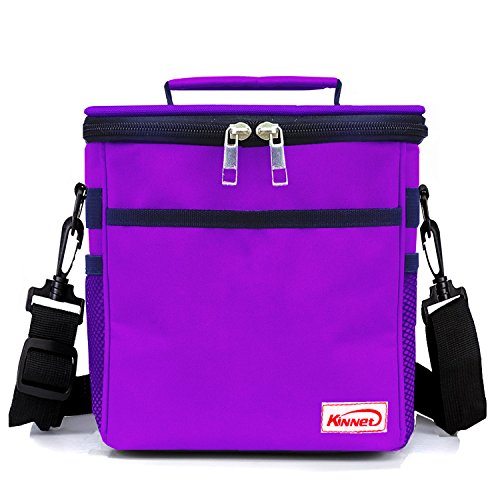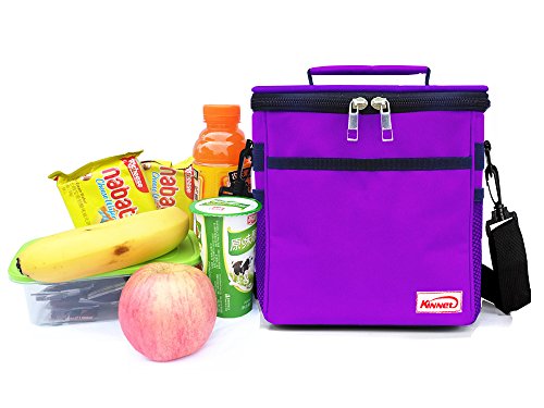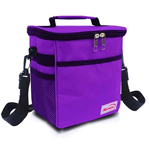 Kinnet Insulated Cooler Lunch Bag Lunch Box for Women, Men, Kids with Shoulder Strap, Front Pocket and Side Pocket (Purple)