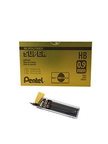 Pentel Super Hi-Polymer Lead, 0.9mm, Medium, HB, 30 Pieces/Tube, Box of 12 (C29-HB)