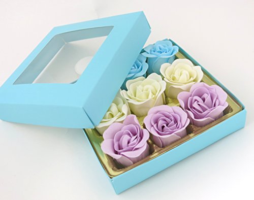 Easter Rose bath-soaps, includes nine rose flower bath bombs with blue gift box