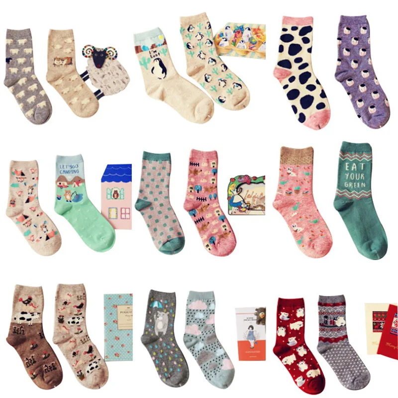 Size: US 5-9 (Eur 35-40) Pattern: Cartoon animal Season: Spring Autumn Winter Style: Creative Printing: Rabbit,Bear,Penguins,Cow,Sheep,Speck,Duck; Weight: About 70g/2pairs