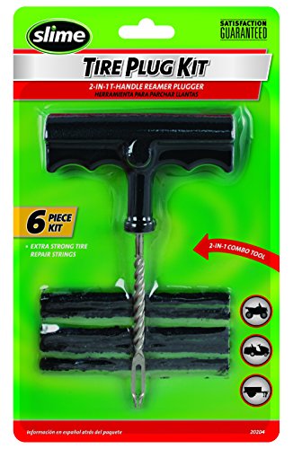 - 6-piece kit comes with a 2-in-1 T-handle tool and 5 extra-strong tire repair strings