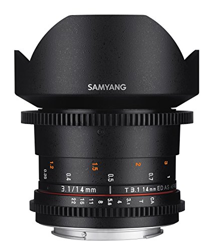 Features built-in petal shaped lens hood, de-clicked apertures and follow focus compatibility and includes lens pouch, lens caps, instruction manual and 1 year Samyang warranty