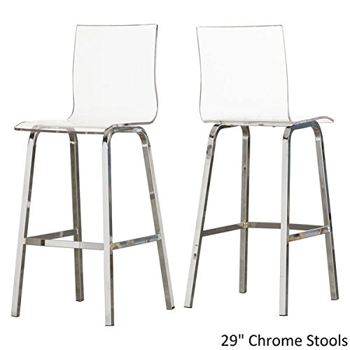 -. Brand : iNSPIRE Q -. Color : Clear -. EAN : 0783050391617 -. Feature : Clear acrylic is both elegant and durable / Stool can be assembled with or without included swivel option / 29-inch bar is ideal for 40 - 42 inch table heights / Seat dimensions (with / without) swivel: 16.1 inches long x 16 inches wide x (31 / 29) inches high / Overall dimensions (with / without) swivel: 18.8 inches long x 17.5 inches wide x (46.5 / 44.5) inches high -. Label : iNSPIRE Q -. Manufacturer : iNSPIRE Q -. ProductGroup : Furniture -. ProductTypeName : HOME_FURNITURE_AND_DECOR -. Publisher : iNSPIRE Q -. Studio : iNSPIRE Q -. Title : iNSPIRE Q Bold Chrome 29" Miles Clear Acrylic Swivel High Back Bar Stools with Back (Set of 2) -. UPC : 783050391617