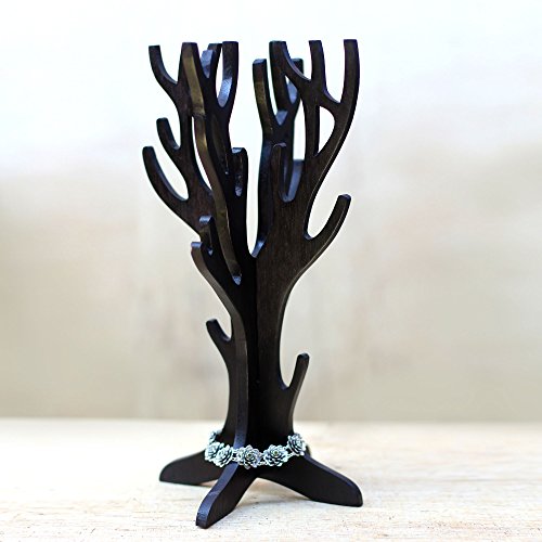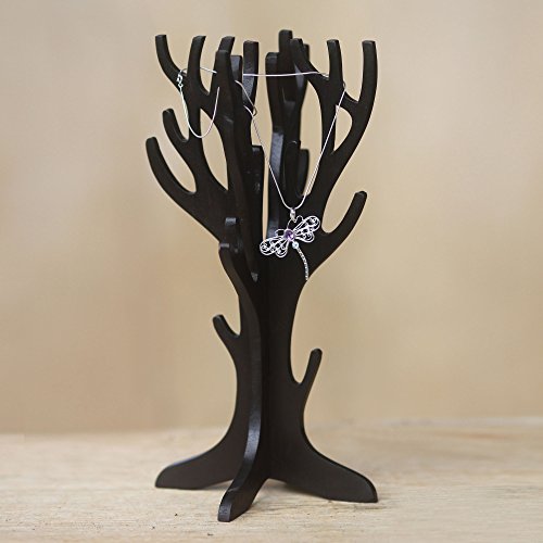 NOVICA Artisan Crafted Natural Jempinis Wood Jewelry Display Stand, Black, 'Sumatra Coral'