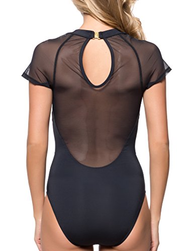 Product DescriptionMeshing around fashion high neck one piece swimsuit with removable cups0