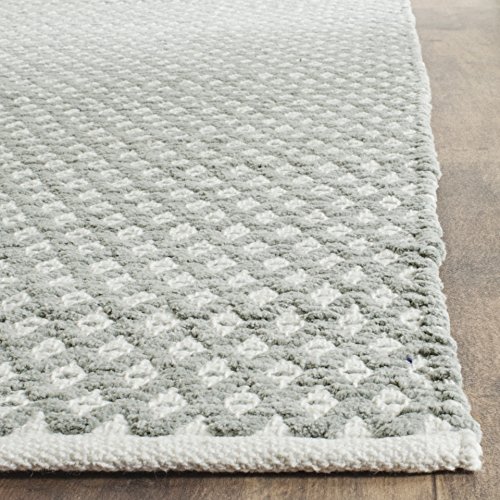 The Boston Collection by Safavieh is crafted of 100-percent pure cotton for luxurious softness underfoot and exceptional clarity of color. Perfect for casual interiors from coastal, to country, to sophisticated suburban, this lush hand-woven rug features geometric motifs in grey with creamy white accents. Inspired by Moroccan designs, this rug is visually immaculate with a nautical vibe that will seamlessly integrate into any household.