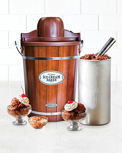 Bring the ice cream shoppe right into the kitchen with everything you need for the homemade ice cream experience. This ice cream maker churn up to 6 quarts of delicious strawberry or chocolate homemade ice cream at a time. Simply add your ingredients into the aluminum canister, layer with ice and salt, and let the electric motor do the rest. Soon you will have wonderful homemade ice cream!Feature
