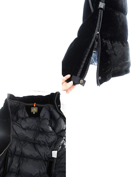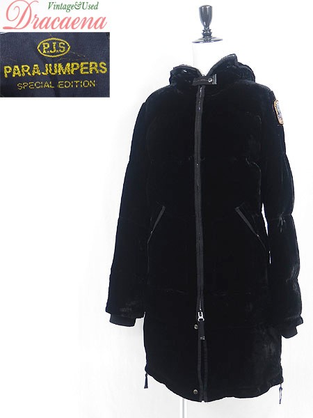 Ladies ブランドPARA JUMPERS パラジャンパース カラー黒 メール便不可 コンディション★★★ 素材ビスコース(レーヨン)・シルク/ポリアミド/ダウン・フェザー 表記サイズM スタッフコメント後、左腰付近にリペア跡あり。フード付属品欠損(着用には問題ありません)。 実寸サイズ 着丈 91 cm 身幅 49 cm 肩幅 39 cm 袖丈 64 cm ※ウエスト・ヒップ以外は平置き採寸