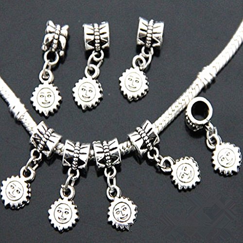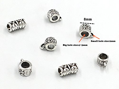 - PACKAGE INCLUDES-100g assorted bead connector.Color:Tibetan silver tone.Diameter:about 8mm.Big hole size:4~5mm(fit to all European Charm Bracelets).Hang hole size:2mm.