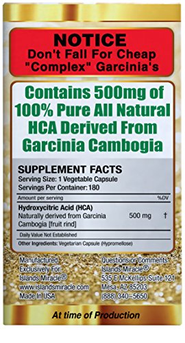 INTRODUCING 100% HCA PURE GARCINIA CAMBOGIA EXTRACT By Islands Miracle - We Set The BAR AGAIN For The Highest Potency Garcinia On Amazon Or Anywhere! This is 500mg of ALL NATURAL PURE HCA from Garcinia Cambogia Fruit Rind!