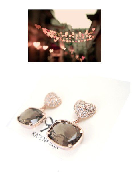 ★愛されハート型モチーフと優しいカラーのスモーキークオーツが美しいピアス★