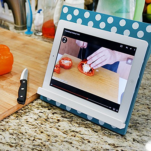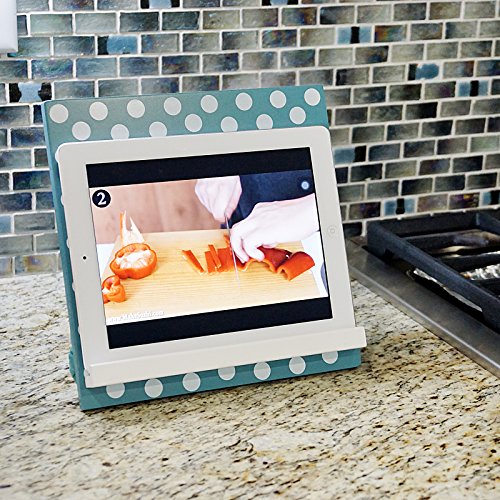 WELLAND Reading Cookbook Cook Book Stand Holder Tablet Holder Stand (Teal w/White Dots)