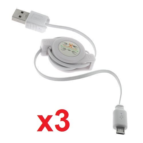 -. Title : eTECH Collection 3 Pack of Retractable USB to MicroUSB Cable - USB Charge / Data Sync Cable - For Samsung Galaxy S3 S4 S5 Note2 Note3 Note 4 - Motorola Moto G, Moto X, LG G2 G3, HTC ONE, DNA, HTC ONE M7, M8 and most Smart Phones that using Micro USB (White Color) -- Free Shipping From USA