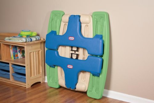 - Feature : Indoor/Outdoor table ?unlocks? and folds for portability or storage / Includes two cup holders and a multi-purpose condiment/crayon tray / Center hole holds the Little Tikes market umbrella (included) / No tools are required to set it up or take it down / Seats up to 6 children