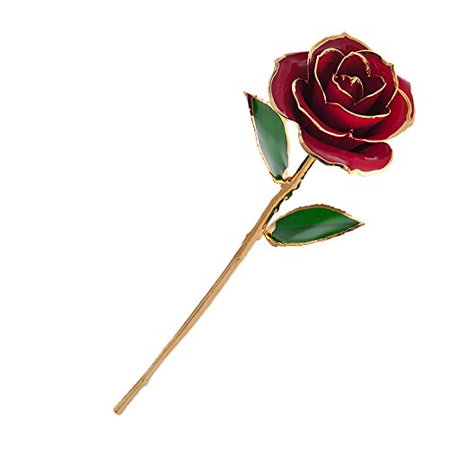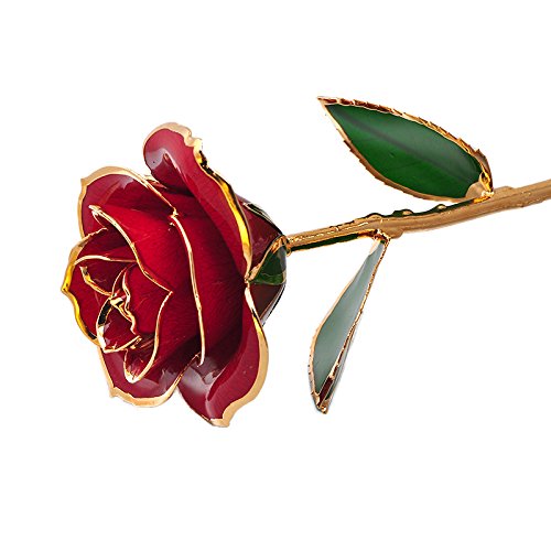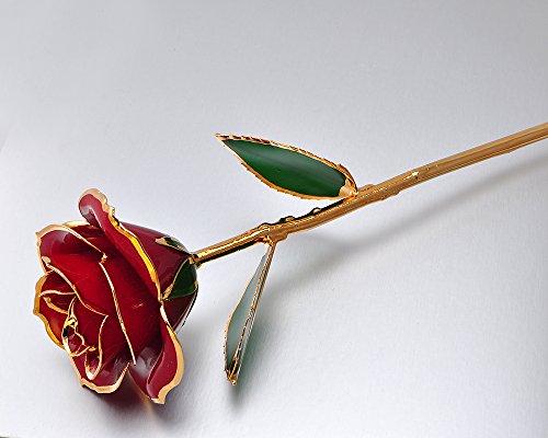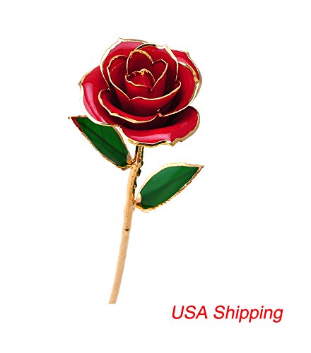 Zinnor (USA Shipping) Love Forever Long Stem 24k Gold Foil Trim Red Rose Flower, Best Gift for Valentine's Day, Mother's Day, Anniversary, Birthday Gift