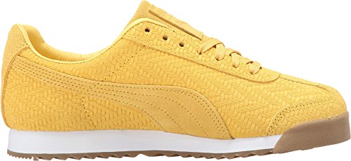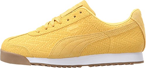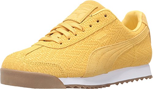 Lightly padded tongue and collar. A traditional lace-up front with a lightly padded tongue combines to give you a secure fit. Woven PUMA label on tongue. Classic PUMA Roma gold or silver foil detail on lateral side. Abrasion-resistant rubber toe bumper. Two-tone EVA midsole provide ample cushioning and shock absorption. Rubber outsole for traction. Imported.