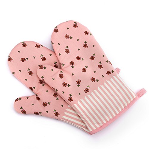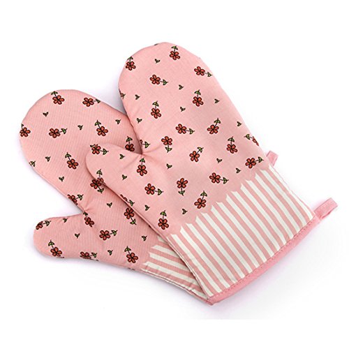 Katoot@ 1 Pair Cotton Anti-slip Gloves Microwave Oven Toaster Heat Resistant Insulation Gloves Pot Holder (Pink)