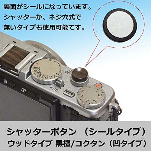 -. Feature : 【商品の概要】 シール貼付式のソフトレリーズボタン。シール式なので、ネジ止めタイプのシャッターでなくとも、レリーズボタンの取付ができます。 / 【商品の仕様】 直径は約10mm、厚みは約2mm。シャッターを押しやすくするため、緩やかな凹形状となっています。 / 【適合カメラ】 カメラ側のシャッターボタンが平らなカメラなら使用可能です。フジフィルム X70、X-E1、X-A1、ペンタックスQ10、キヤノンG9Xにて取付確認済みです。 / 【商品の詳細】 カリン、サクラ、ウオールナット、コクタン、シャムガキ、パドックの材質をご用意。形状はフラットタイプと、凹タイプ。 / 【取付不可能機種】 ソニーアルファ7のような、面が平らでも、ボタンのストロークが深いカメラでは使用不可能です。