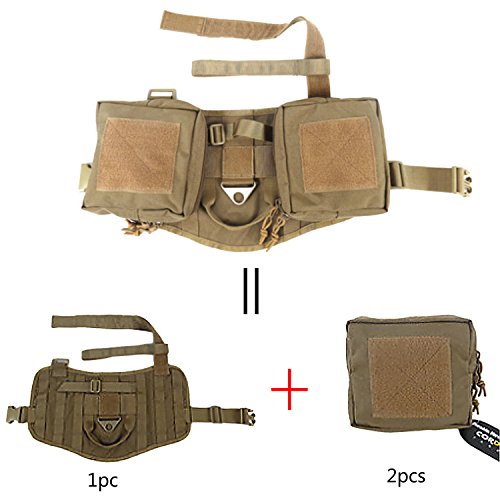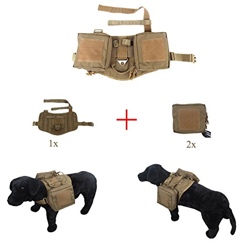-. Binding : Misc. -. Brand : Huntvp -. Feature : Made of high quality material 1000D Nylon, easy to dry and water-resistance,durable to use / Molle design for you to add extra pouch or accessories. / Velcro section runs down the top center for attaching ID, patches / The belt can be adjusted in the thorax and abdomen section. / Please pay attention to the size before you place the order. -. IsAutographed : 0 -. IsMemorabilia : 0 -. Label : Huntvp -. Manufacturer : Huntvp -. ProductGroup : Sports -. ProductTypeName : SPORTING_GOODS -. Publisher : Huntvp -. Studio : Huntvp -. Title : Huntvp Tactical Dog Training Harness Vest Hunting Molle Rucksack Compact Nylon Packs Coat with Detachable Pouches