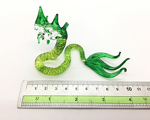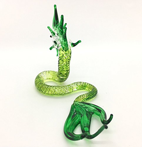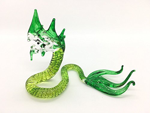 HAND BLOWN Art Glass,Green Naga Miniature Animals Collection, Dollhouse Miniatures,By Audomna Shop.(N0031)