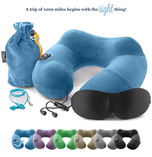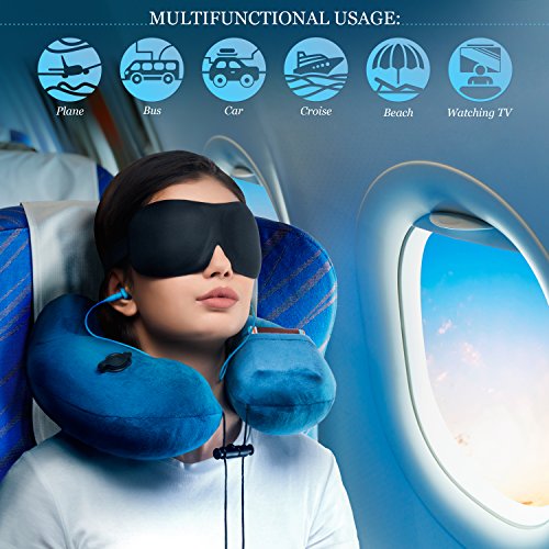 3in1 - TRAVEL NECK PILLOW with an excellent 3D SLEEP MASK, 1 pair of HIGH- FIDELITY EARPLUGS and a compact CARRY BAG – all the best things to relax your mind wherever you are – MyTravelUp