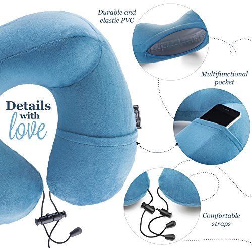 ORIGINALITY, PRESENTABLE AND HIGH QUALITY – is made from exceptionally premium material. The top sheet of pillow consists of velour cover that gives you an unforgettable and a pleasant sensation; the internal sheet of neck pillow - durable PVC. The convenient travel pillows feature a CHEMICAL FREE, providing protection against allergy, weariness and headaches.