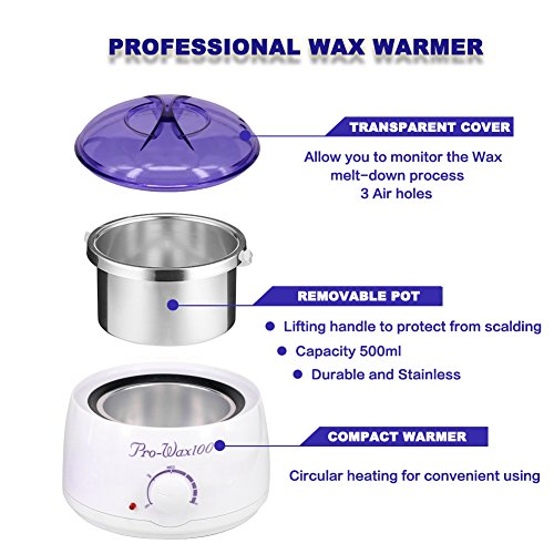- MELT ALMOST ALL WAX-- The wax heater melting pot accommodates wax container can melt almost all types of wax including wax beads, hard wax, soft wax, 14 ounce wax cans, loose wax, bricks bikini wax, microwavable wax and hair wax, etc