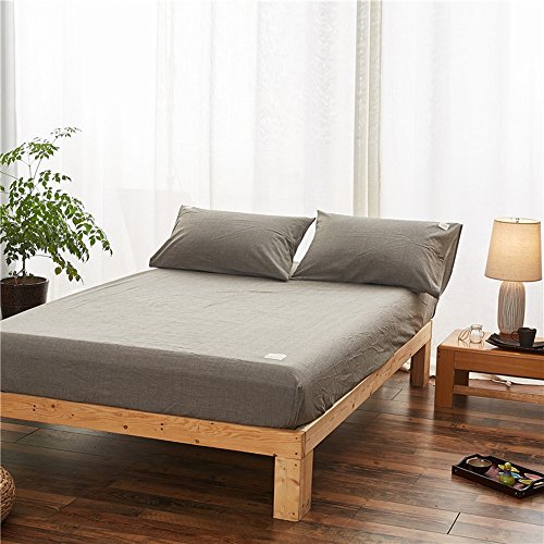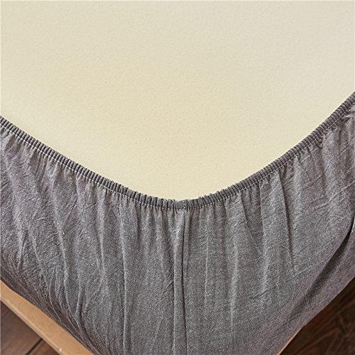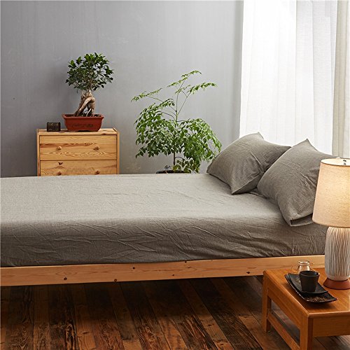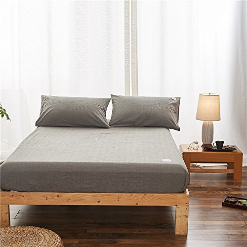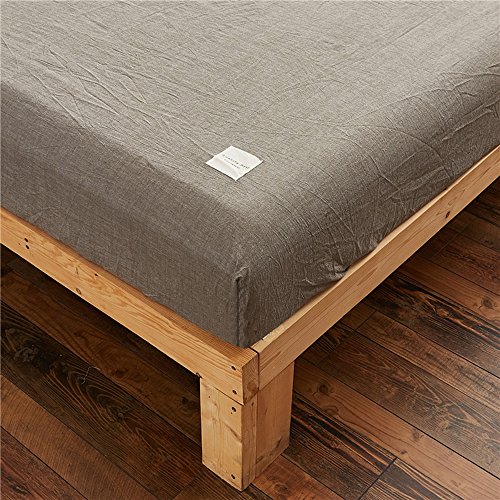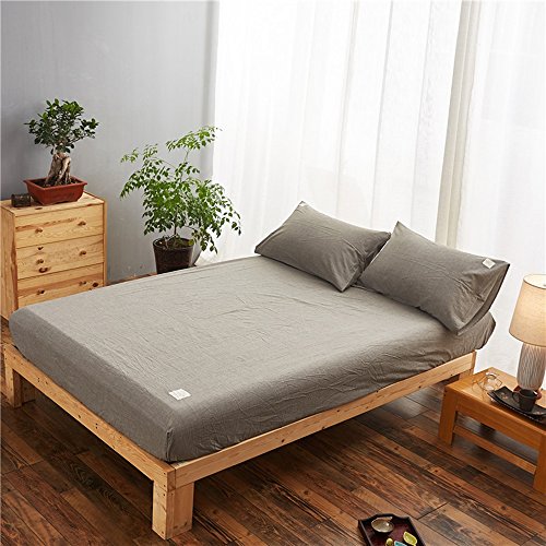 Uozzi Bedding 100% Washed Cotton Queen Fitted Sheet 60"X80"X15" (without Pillowcases),Soft, Durable and Comfortable. (Queen,Gray)
