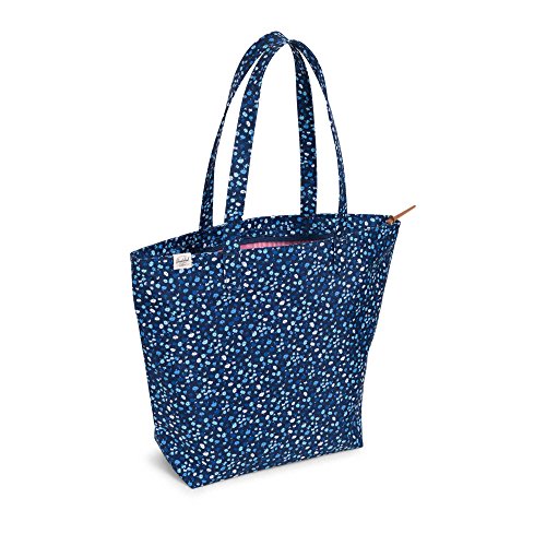 The contemporary mica tote features a zippered compartment with extended handles that allow it to be comfortably worn on the shoulder.