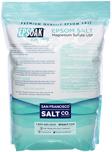 DISSOLVES QUICKLY/GREAT VALUE: After soaking in Epsoak Epsom Salt it becomes clear why Epsoak is the leading name in Epsom Salt. The expertly selected grain size of Epsoak Epsom Salt means that it dissolves quickly & easily in warm water without hassle every single time. It's transparent/slightly white in color, and is unscented. Buy in BULK and save.