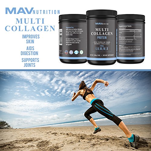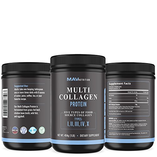 -. Feature : COMPLETE COLLAGEN PROTIEN: MAV Nutrition Multi-Collagen is an all-in-one, premium collagen protein supplement with a potent, high-quality blend of hydrolyzed bovine, chicken, fish, and egg collagen peptides, providing collagen Types I, II, III, V and X. / ENDLESS BENEFITS | NEW MULTI COLLAGEN EDITION. Get ready for the most nutritious packed Multi Collagen available! You will see and feel the results! These powerful Collagen Protein combination Supports Healthy and beautiful hair, skin, and nails.* / IMPROVE DIGESTIVE HEALTH*: MAV Nutritions Multi Collagen Protein supports a healthy digestive system* / ANTI AGING PROPERTIES*: As we age our collagen production declines, resulting in wrinkles, stretch marks, and cellulite.* Multi-Collagen Proteins help to restore that radiant foundation for our skin.* Multi Collagen also supports regeneration of cartilage, joints, and tendons and works to improve the flexibility and elasticity of our skin.* / 100% MONEY-BACK GUARANTEE - We are confident you will love our Premium Multi Collagen Supplement and back it with a 60-day money-back guarantee. Nothing to lose!