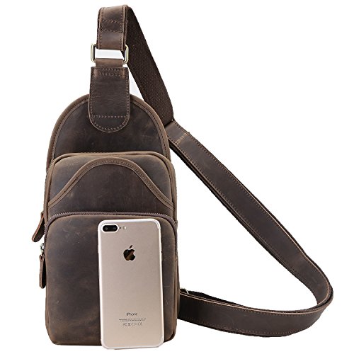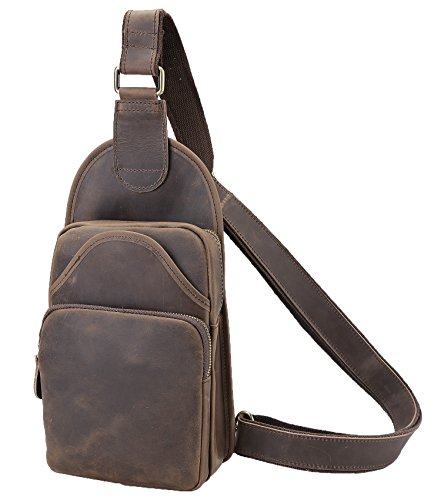 Polare Men's Full Grain Leather Cross Body Shoulder Chest Sling Bag Backpack