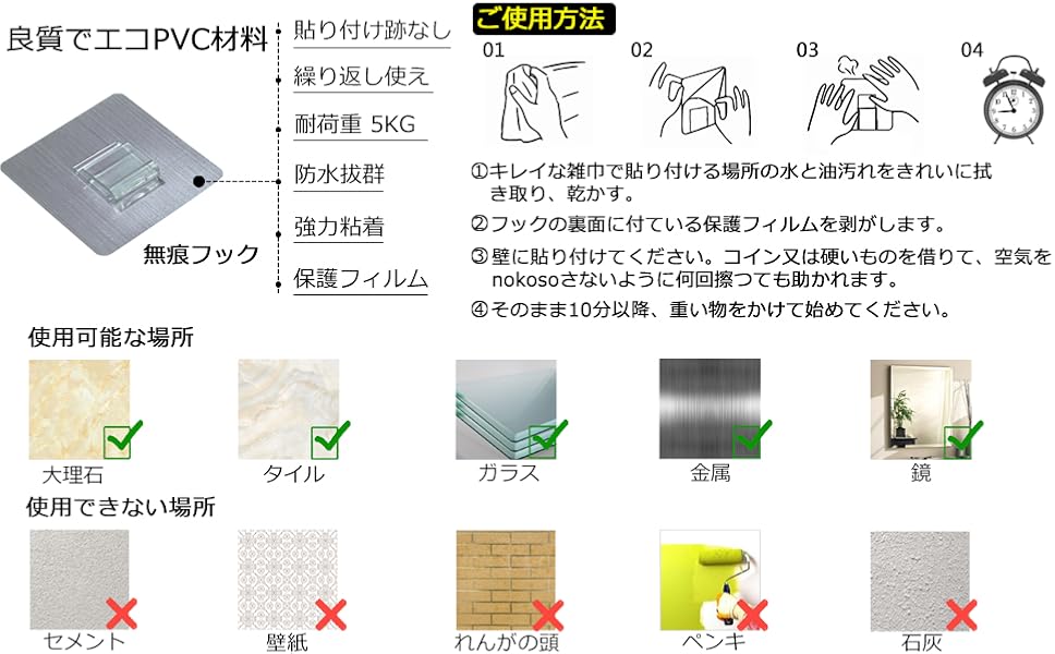 • 弊社の無痕フックはここがすごい!PVC素材を使用