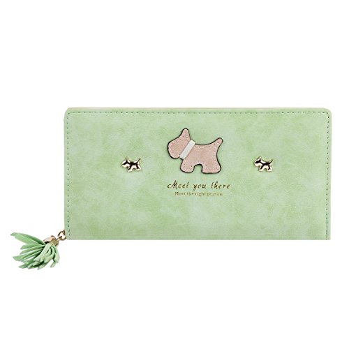 Binding : Apparel Product Description The lovely dogs design on the front adds a touch of contemporary sophistication to this chic wallet.It is made of faux leather and features a snap closure.The well-organized interior includes 11 card slots to hold credit cards, debit cards,and 1 photo ID,3 slot pockets to hold cash, important papers, and receipts,and an exterior back zippered pocket to hold loose change or other small accessories.This wallet comes in a variety of classic colors that can be easily coordinated with your favorite handbag .Measurement is app 18.5x9.5x2.5cm(7.28x3.74x0.98inch). 0